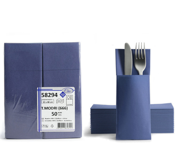 Einfach in die Öffnung Messer, Gabel oder Löffel einschieben und schon ist die praktische Besteckserviette sauber für Ihre Gäste vorbereitet.